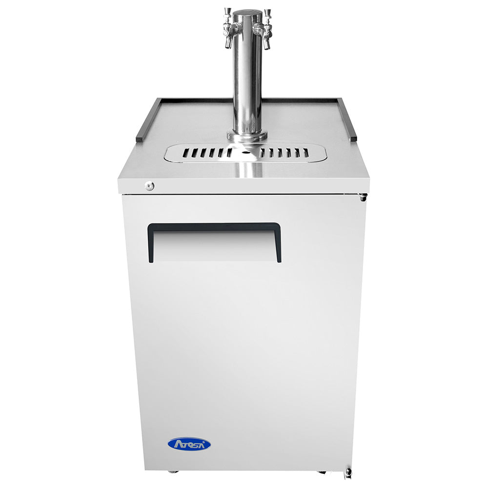 Draft Beer Dispensers are similar to Back Bar Coolers but have integrated draft beer taps and hold half-barrel kegs in the refrigerated section. Larger models hold up to 5 kegs, with multiple taps for variety.