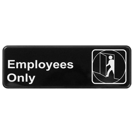 Winco SGN-305 - Letrero exclusivo para empleados 3" x 9" - Letras blancas sobre fondo negro - Reverso adhesivo sensible a la presión